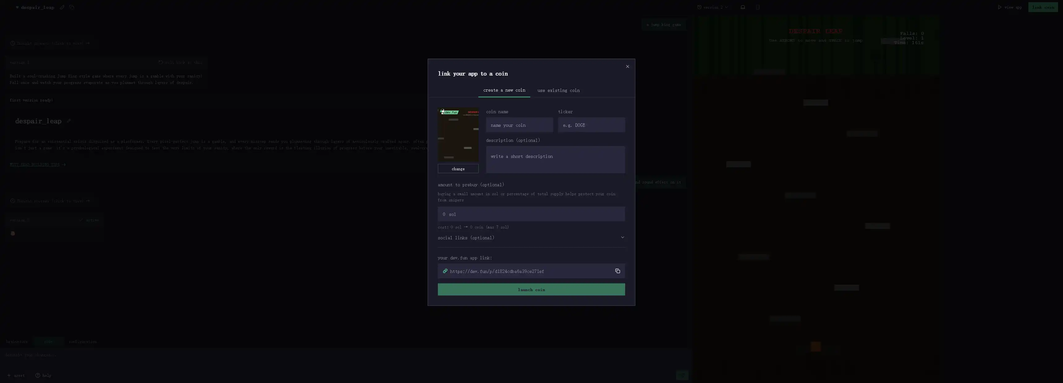 将 App 反复修改打磨到满意后,就可以选择将 App 本身在 pump.fun 上发一个币,或者是关联到某个 pump.fun 的币种上。