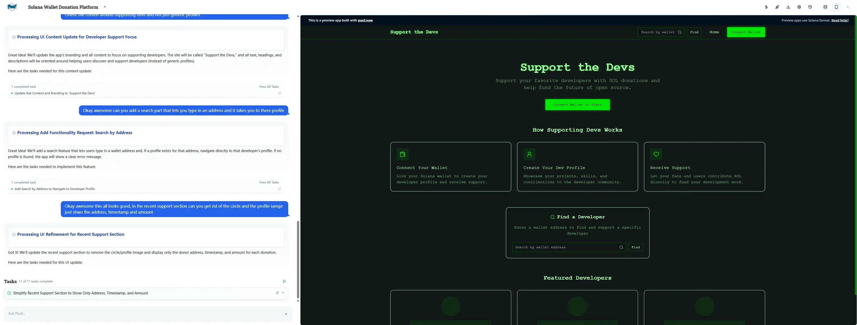 poof.new 获得了来自 AllianceDAO 的支持。和 dev.fun 相比,它没有和项目捆绑的代币,也仅专注于构建 Solana 上的 dApp。