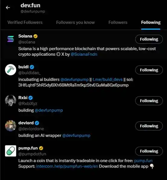 buildDAO 是 dev.fun 官推仅有的 5 个关注之一
