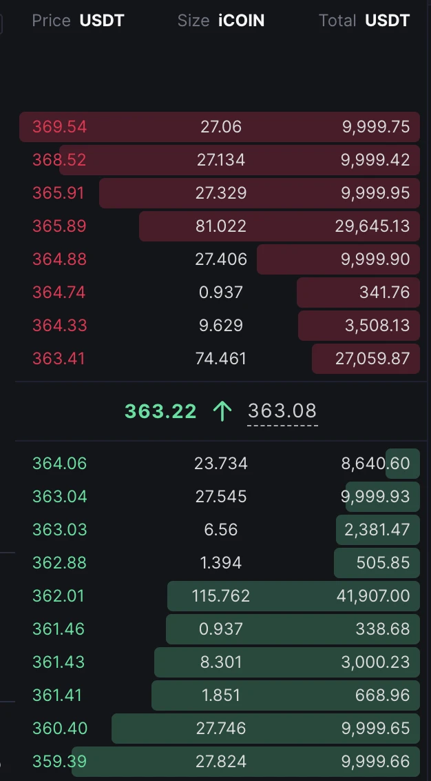 Helix 的美股&外汇产品的交易量 以及 交易量最高的 COIN 的订单簿