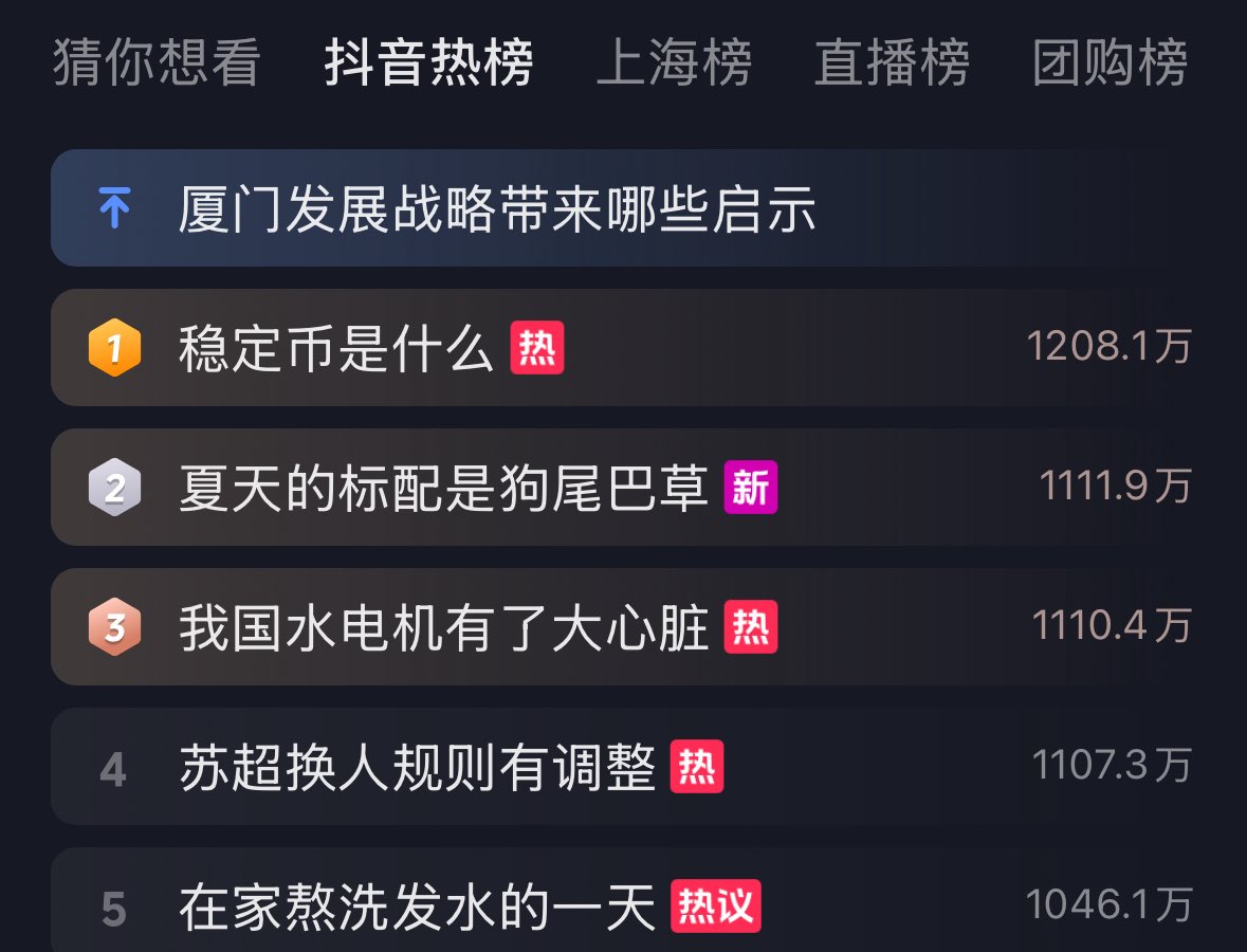 「稳定币是什麽」登上中国抖音热榜首,大批吃瓜网民都懂了?
