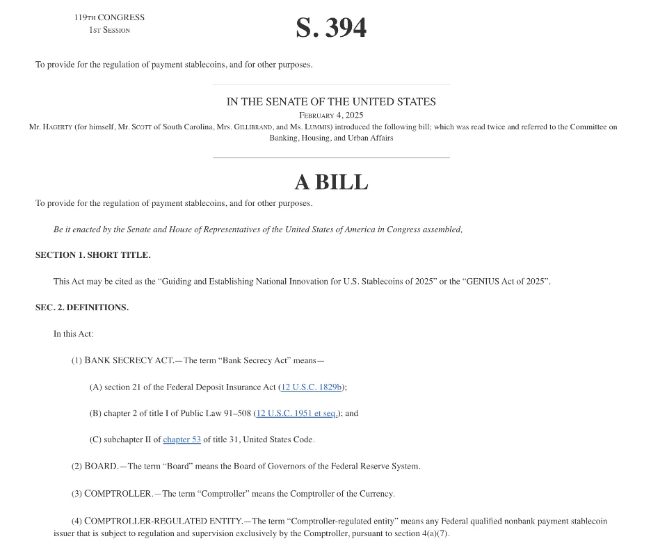 此外,最近美国的立法动向,尤其是参议院的《GENIUS 法案》,标志着加密美元稳定币监管明确性的关键转折点。