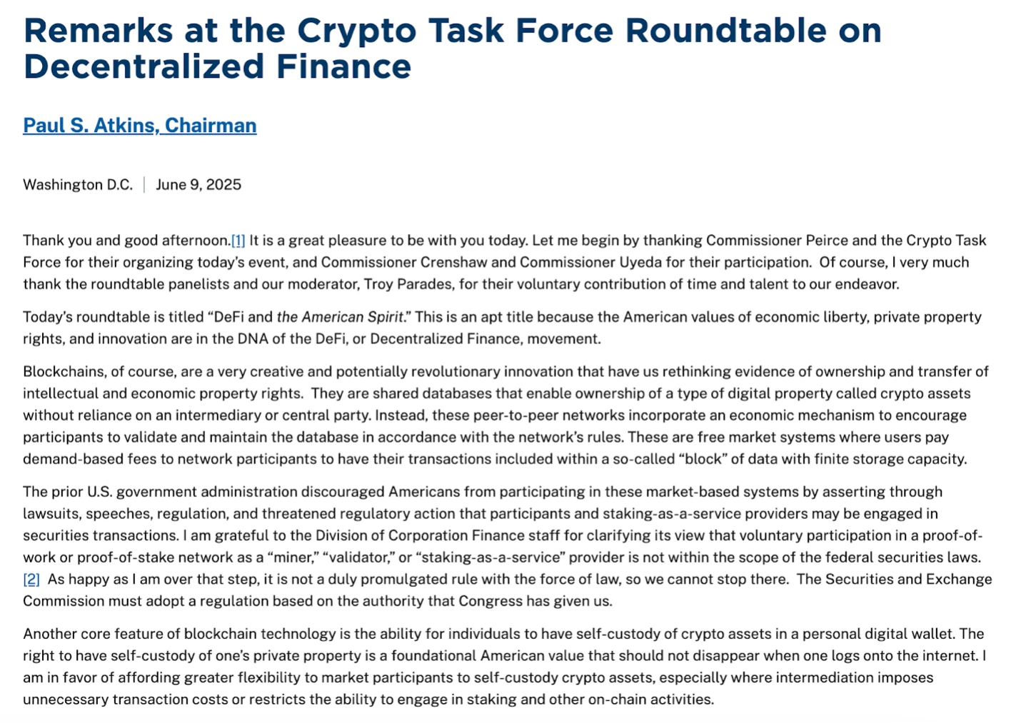 Atkins 已撤回 Gensler 时代针对去中心化金融和自我托管的提案,转而采取“创新优先”的策略。在最近的一次圆桌会议上,Atkins 甚至强调开发者不应因编写去中心化代码而受到惩罚。