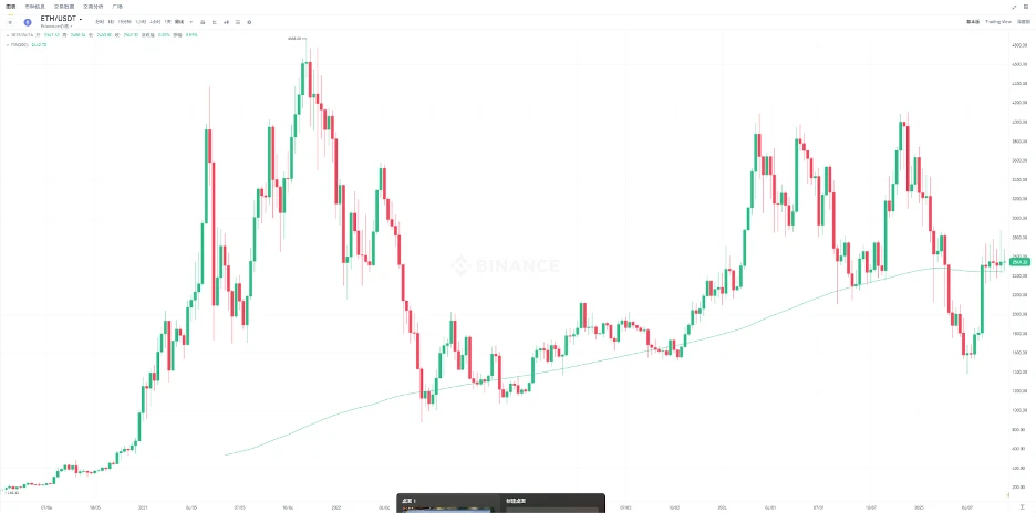 在经历了长期低迷后,在 2025 年 5 月,ETH 重新站上了周线级别的 MA 200 ——这是牛市回归的最经典指标之一。