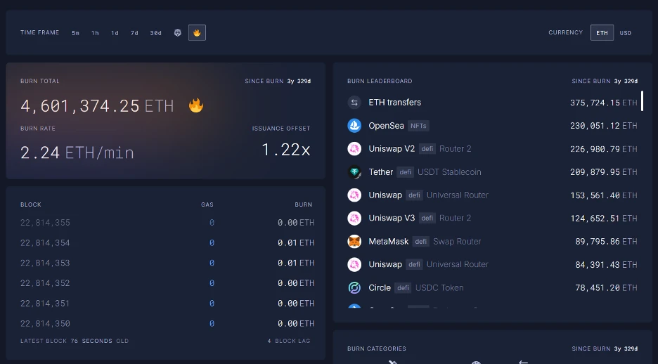 以太坊的原生代币经济学持续强化其投资价值。以太坊的“超声波货币”理论正在实现:手续费燃烧常常超过新发行量,在高活跃期甚至使 ETH 供应呈现净通缩。自伦敦升级以来,已燃烧超过 4.6 百万 ETH,持续减少流通供应。