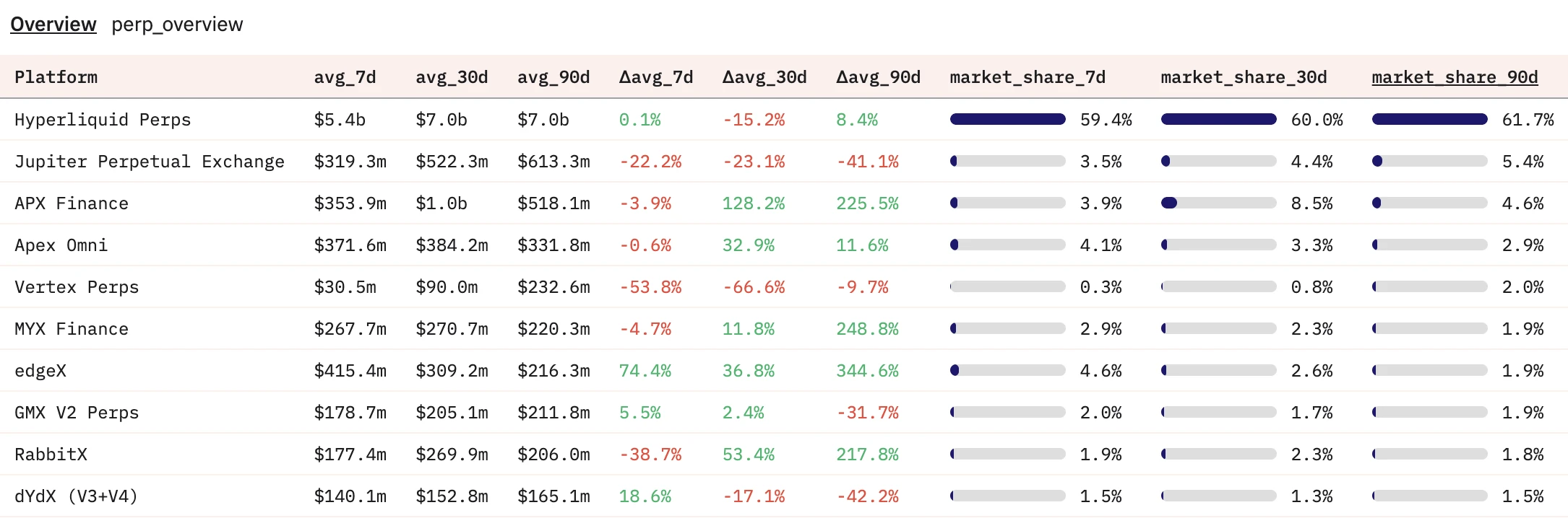 Perp 市场份额占比一览