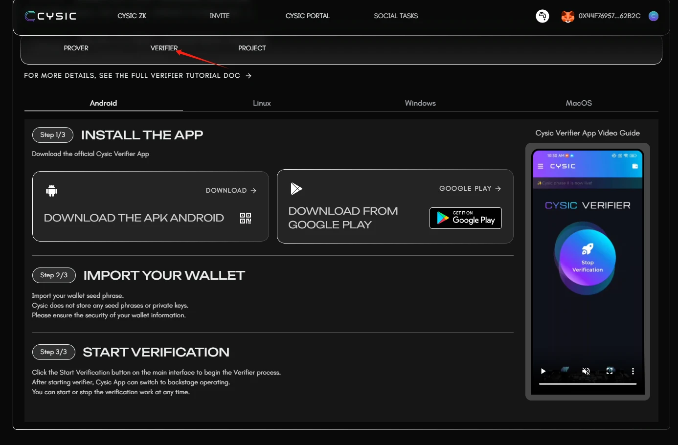STEP 4. 安装验证节点,目前支持安卓手机、Linus、Windows、MacOS 系统。