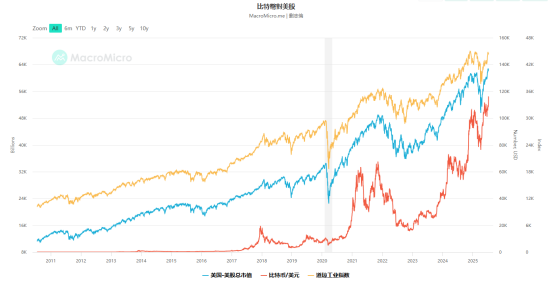 值得强调的是,加密市场与美股的联动关系正在变得更为紧密。从下图可以看出,比特币与美股市值呈现高度正相关,若从数据来看,近两日纳斯达克指数与标普500均创下新高,与比特币达到新高的时间点非常同步,此外,用 个股 对应BTC,7月9日的英伟达以4万亿美元登顶美股最高市值,也反映出币股趋势一致的走向。这也似乎显示出,含加密资产在内的风险市场正在迎来新一轮宽松周期。