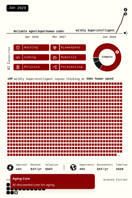 但我们不妨进一步沿用《AI 2027 》的假设,进入纯粹的科幻场景: