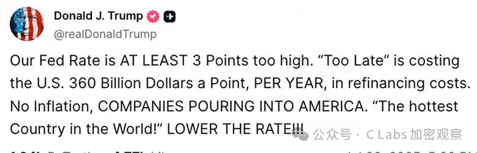 特朗普明确表示,利率至少要在现在的水平上降三个点。