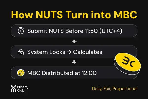 MBC 是 MinersClub 用户通过贡献行为获取的平台代币,具备真实的价值支撑与通证流通属性。 MinersClub 基金会都会从 MBC 总供应中释放出部分贡献,用于激励那些行为通过参与、生态建设、任务互动等方式做出贡献的用户。而这些用户的所有贡献行为,都会被量化为一种新的激励积分 — — NUTS 。