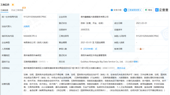 简单介绍一下鑫慷嘉。鑫慷嘉的运营主体是贵州鑫慷嘉大数据服务有限公司,从企查查信息来看,该公司成立于2021年3月1日,最初由黄鑫、邵馨慷、王彦嘉三人出资,持股比例分别为35%、35%、30%,现已全部转为刘海亮,颇为有趣的是,号称注册资本3000万元的公司,实缴资本与参保人数竟然为零,足以看出,从企业成立之初,出资人就给后续发展埋下了暗雷。