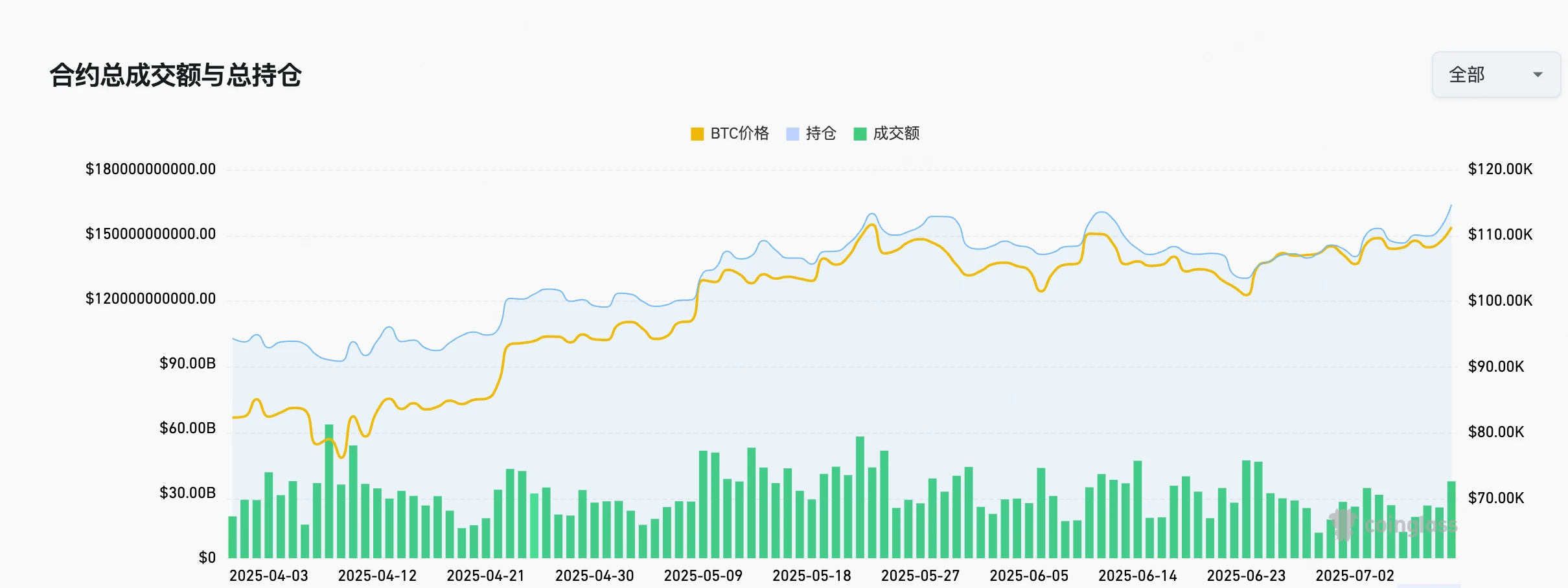 根据 Coinglass 的最新数据显示, 2025 年第二季度,全球加密市场的合约持仓量稳步上升,日均合约交易量连续突破 3, 000 亿美元,最高一度接近 5, 000 亿美元。这一增长趋势反映了市场参与者对合约交易的热情持续高涨。然而,高波动性和杠杆效应使得合约交易不仅成为投资者追求高回报的工具,也变成了一场技术、风险与心理的复杂博弈。对于交易者而言,如何精准把握市场动态、规避潜在风险,已成为能否在这一充满不确定性的市场中成功的关键。
