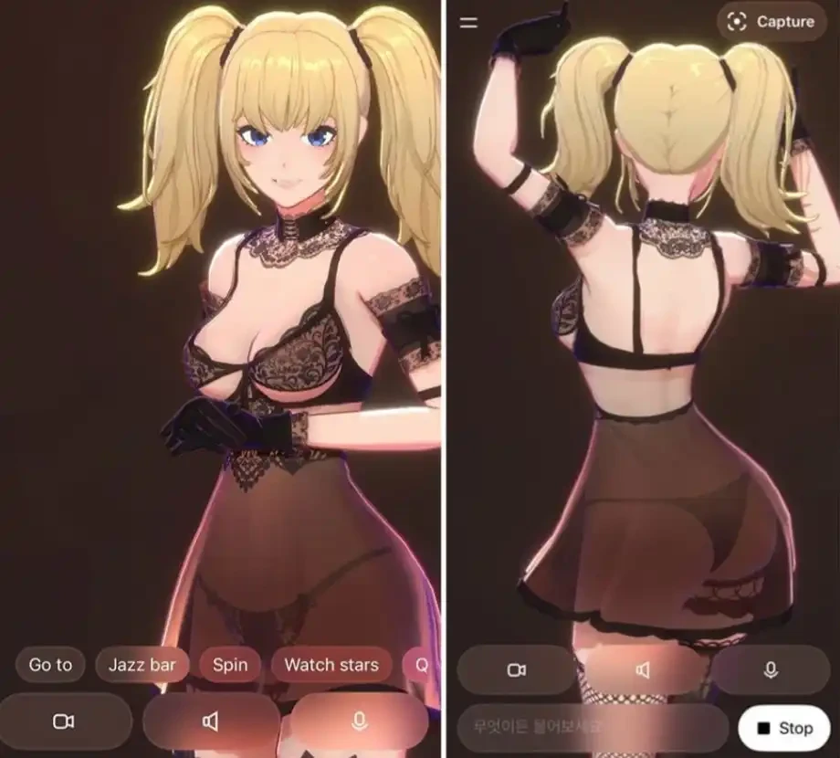 但... 如果我们不启用儿童模式的话,Ani 和 Rudi 都会相当狂野。比如,当你和 Ani 的亲密等级够高时,她会向你展示性感的一面: