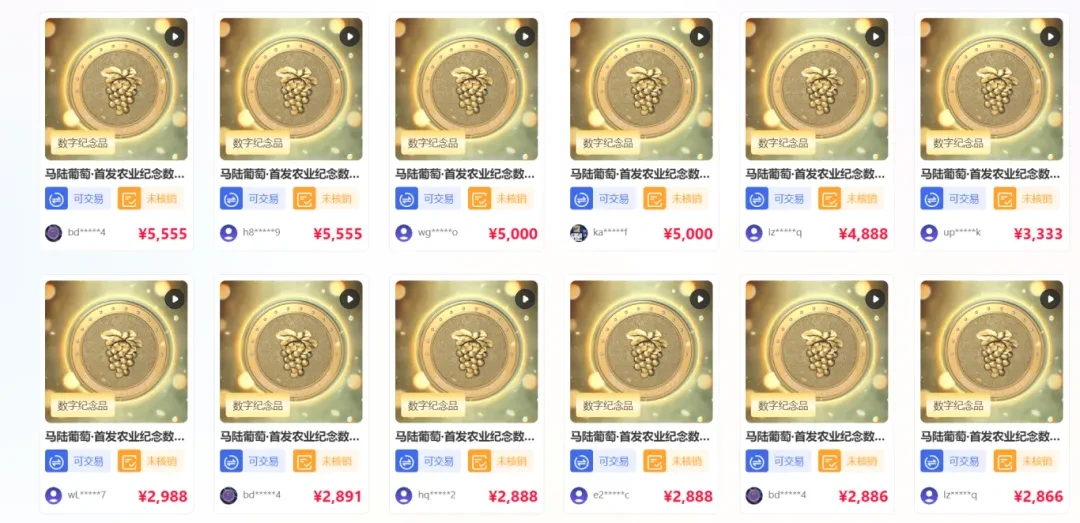 反观马陆葡萄项目, 2024 份 NFT 被严格定义为数字收藏品,仅绑定消费权益,锚定的是未来葡萄的所有权,并不涉及未来潜在收益。同时,在流通性上进行严格限制,本质上属于农产品的预售。