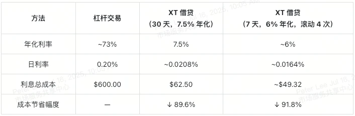 策略一:用 XT 质押借贷替代杠杆融资,成本立省 90%