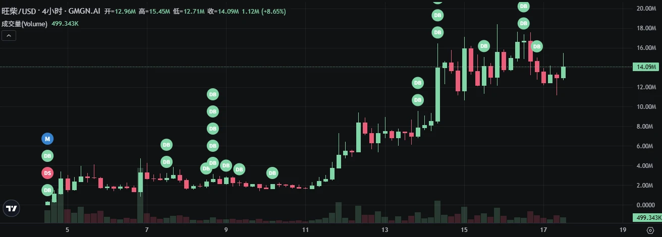 价格表现: 据 GMGN 数据 ,旺柴市值从 7 月 10 日(不足 200 万美元)持续上涨,目前市值为 1400 万美元。