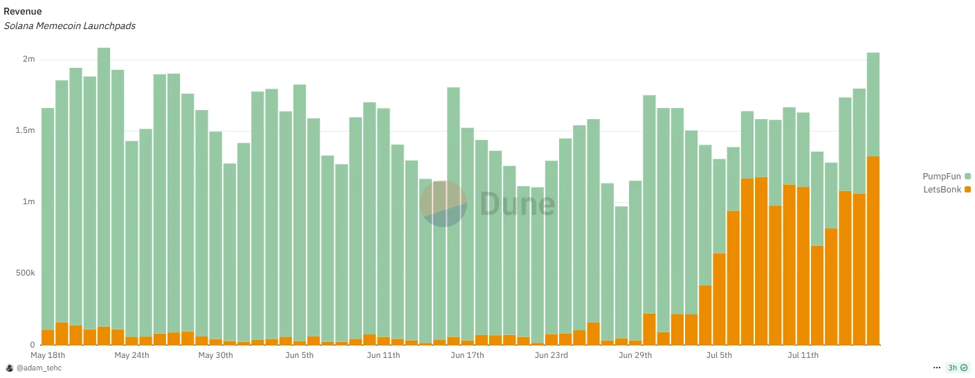 数据维度:Letsbonk.fun 已实现对 Pump.fun 的全面反超