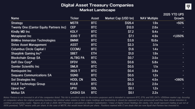 目前,ETH 持仓排名前二的战略储备公司:SharpLink 和 Bitmine 的背后,皆有 Pantera 的身影。