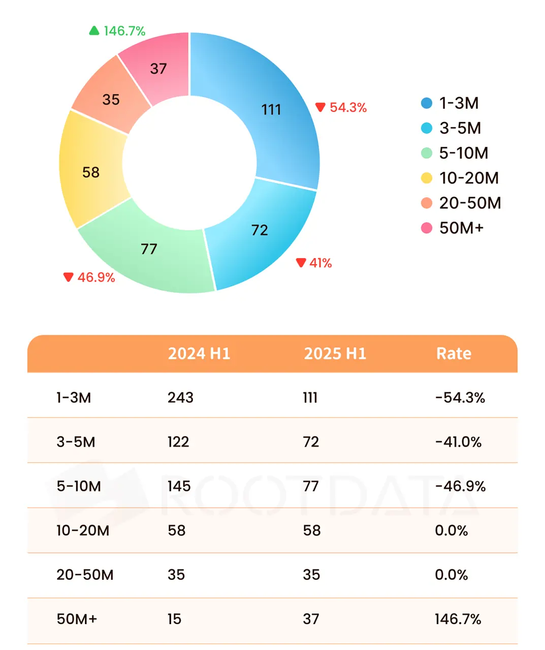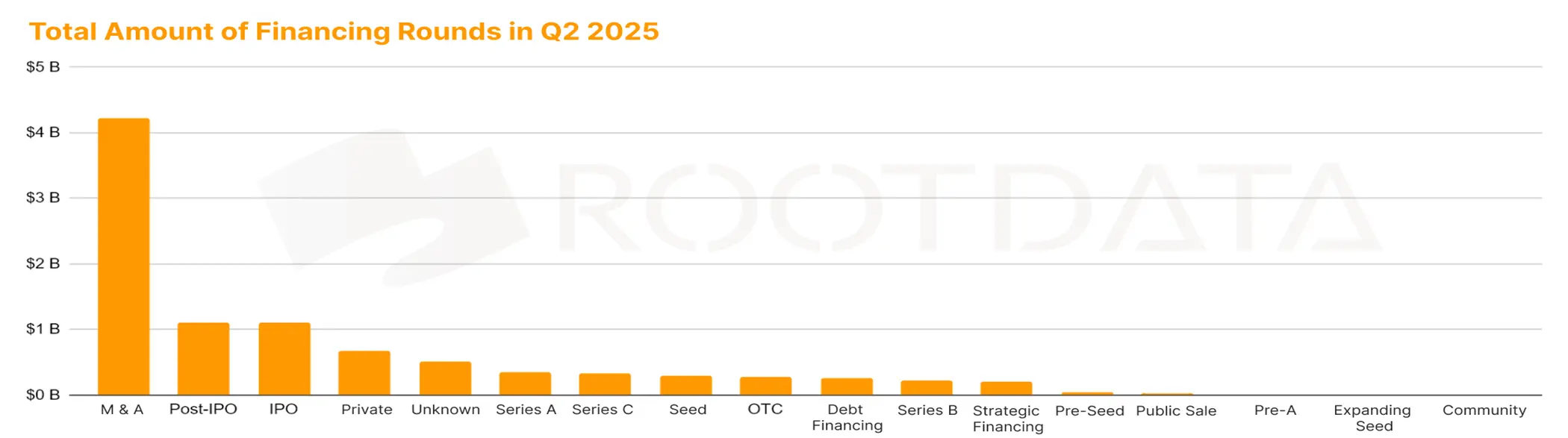 总体而言,2025上半年加密一级市场融资金额显著增长,但事件数量持续下降,呈现大额融资集中、并购活跃、赛道偏好转向CeFi、资金向二级市场流动的趋势。
