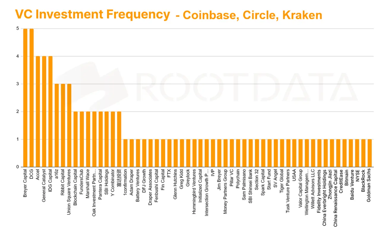 而通过上图分析早期投资和复投Circle, Coinbase, Kraken的风投机构,主要有Breyer, DCG, General Catalyst, IDG, a16z, Rabbit Capital等名列前排,这些VC成为此轮加密美股概念股的最大赢家,这些分散风险的资金溢出有望分散投资风险至综上相关的加密原生稳定币&RWA概念币。