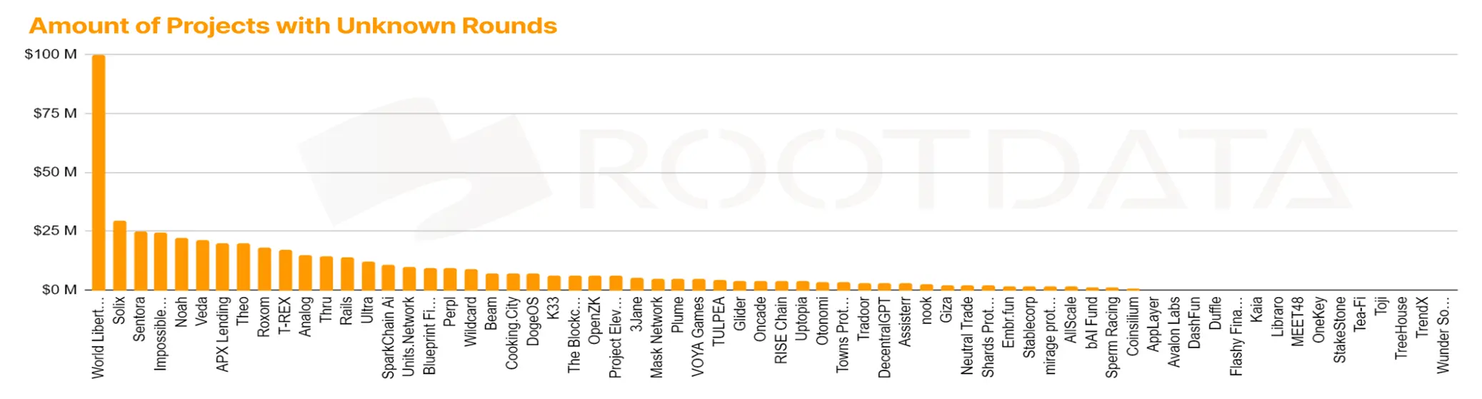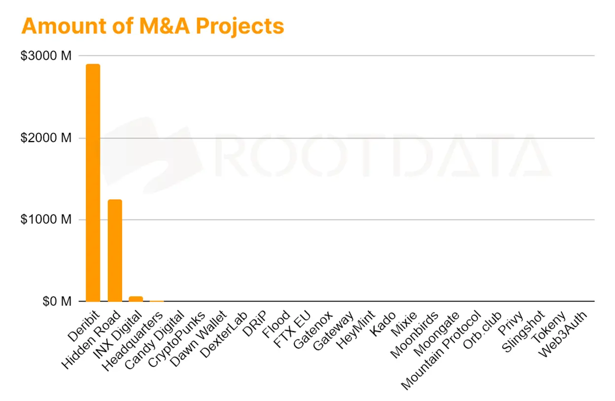 从披露金额的399笔融资中显示,1000万美元以下的融资数量同比锐减超45%,接近腰斩;1000-5000万美元区间数量稳定; 5000万美元以上融资数量激增146.7%,主要集中于CeFi、矿企和资管公司赛道 ,表明资本偏好大额投资,减少小额布局。