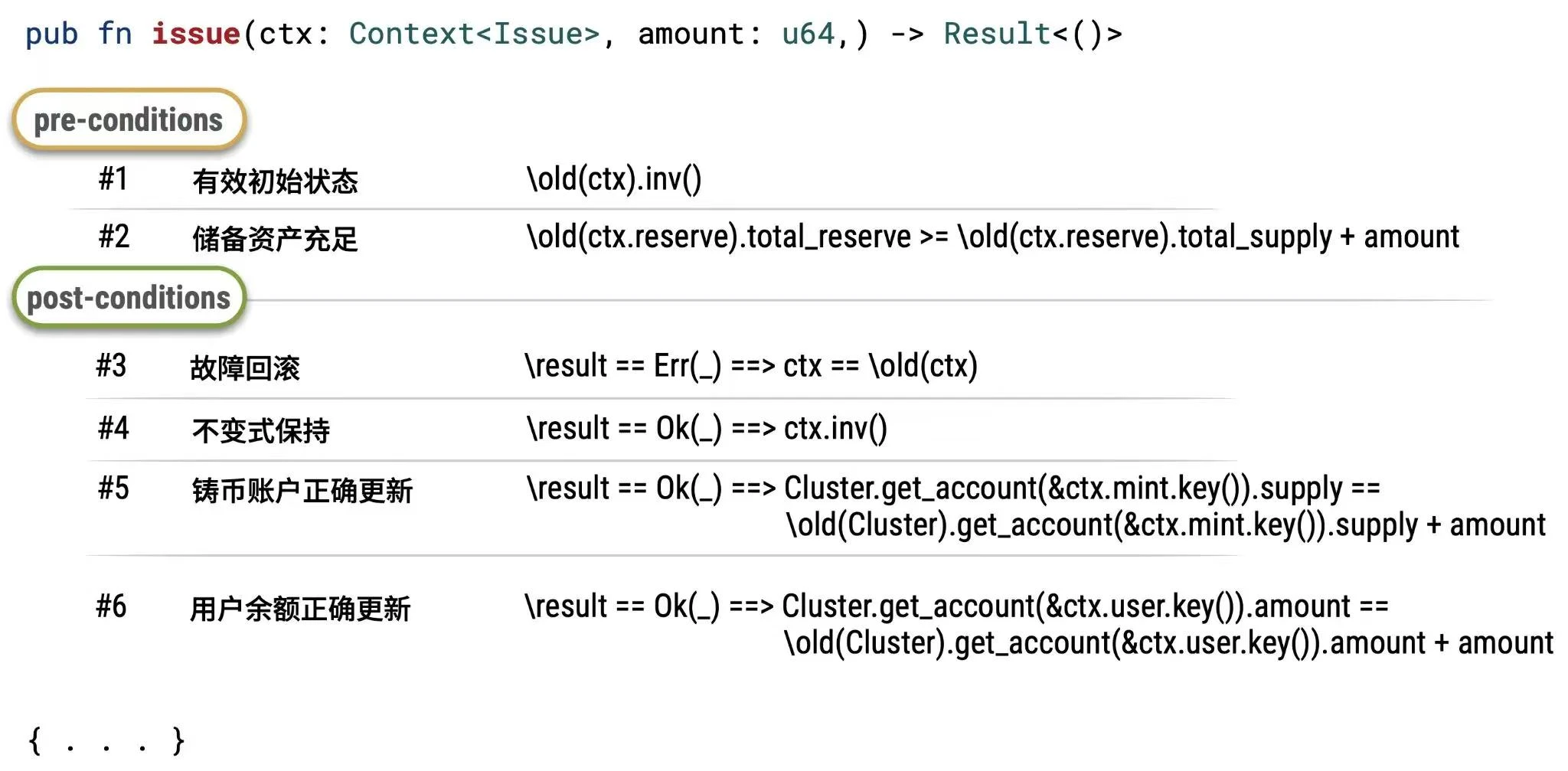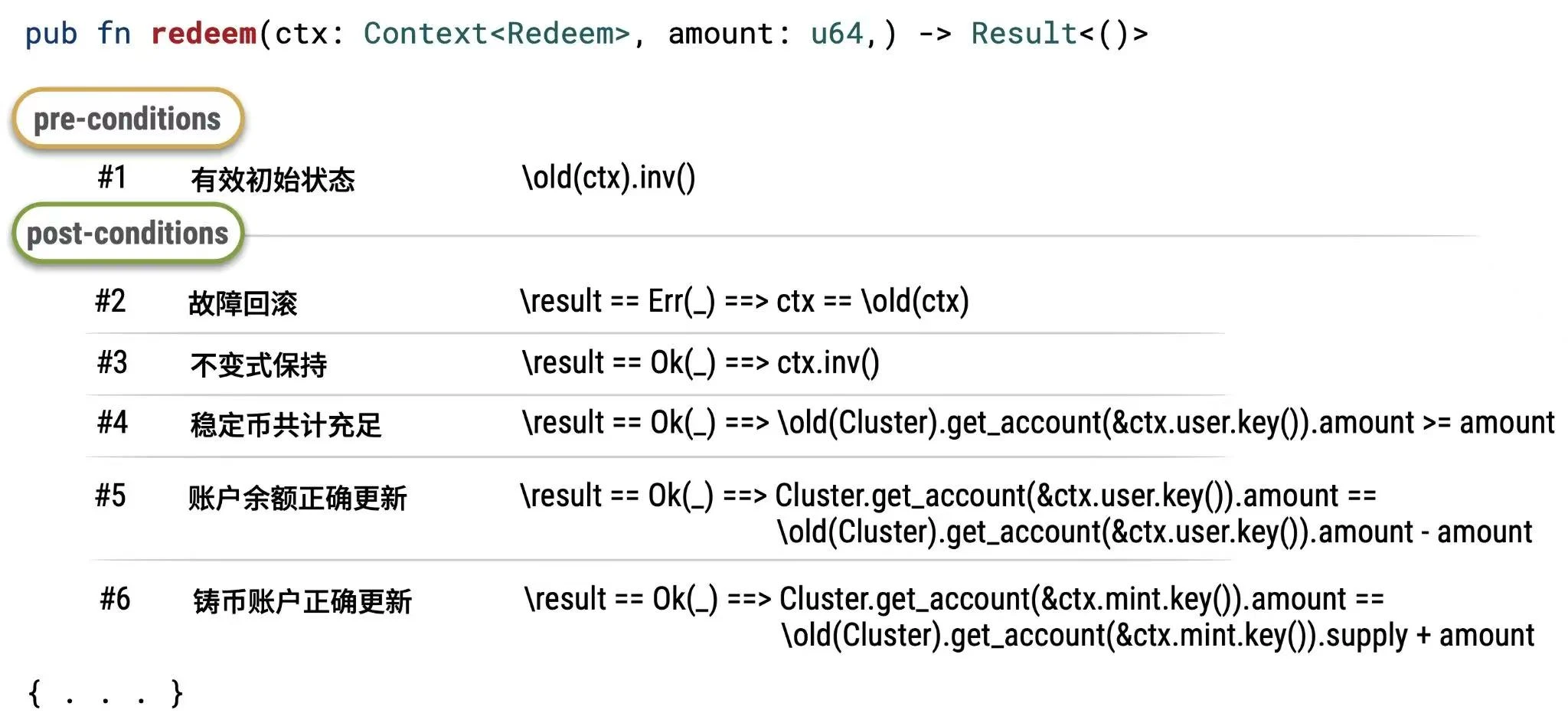 下面是我们构建的 Solana 稳定币程序的精简版本,展示了如何在链的所有操作都满足其核心不变式: