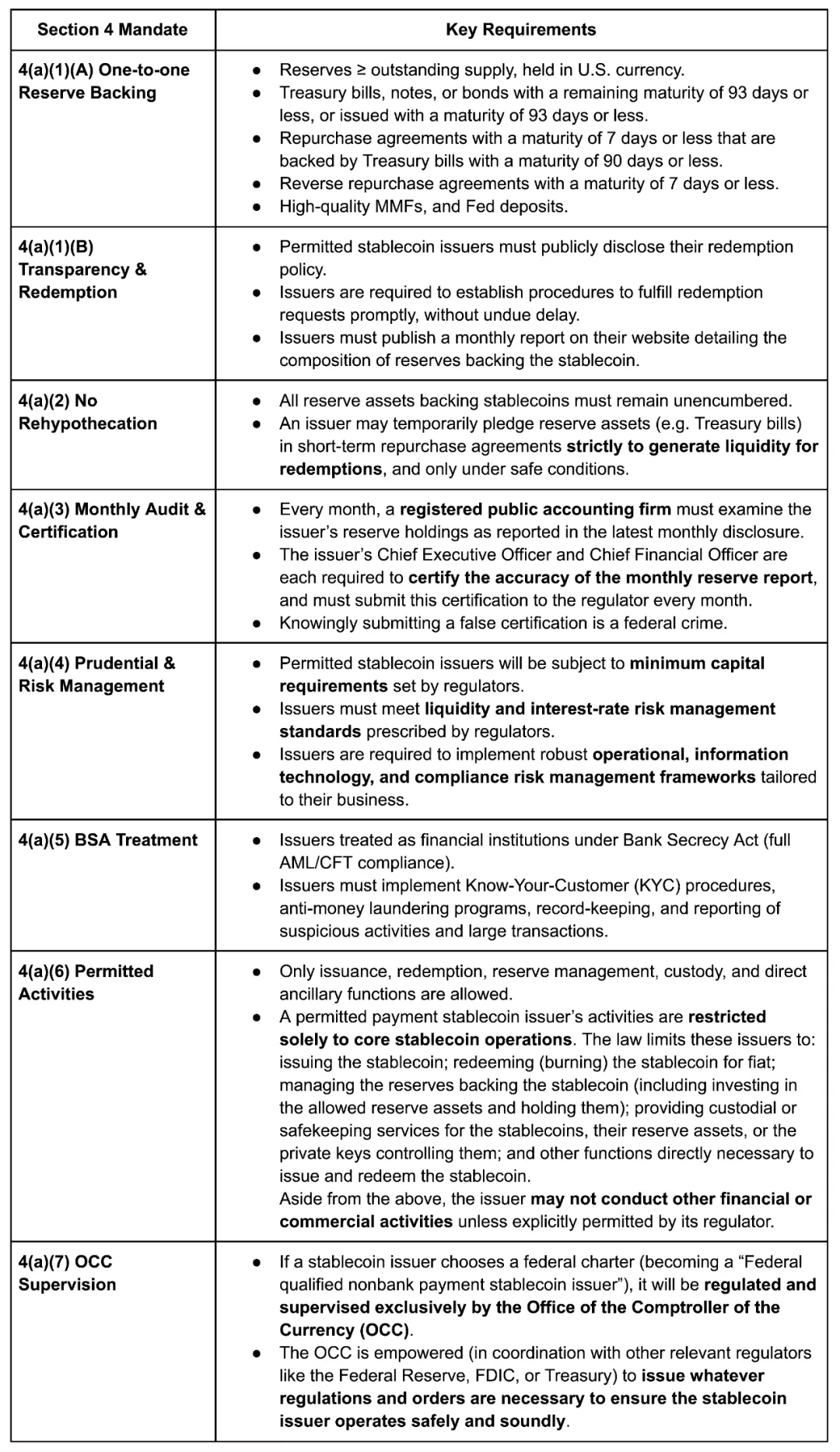 2025 年 6 月推出的《GENIUS 法案》(Guiding and Establishing National Innovation for U.S. Stablecoins Act)为美国的稳定币支付建立了强制性合规框架: