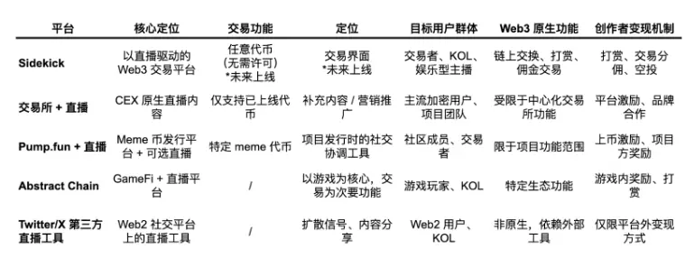 与此同时,像 Binance 这样的交易所也在部署直播功能,但这些直播仅服务于已上线的代币。而 Sidekick 的创作者可以自由地围绕任意资产进行直播——无论是刚部署的新品,还是极小众的叙事代币。这赋予 Sidekick 更强的趋势适应能力,能更敏锐地捕捉社区推动的热潮与投机周期。