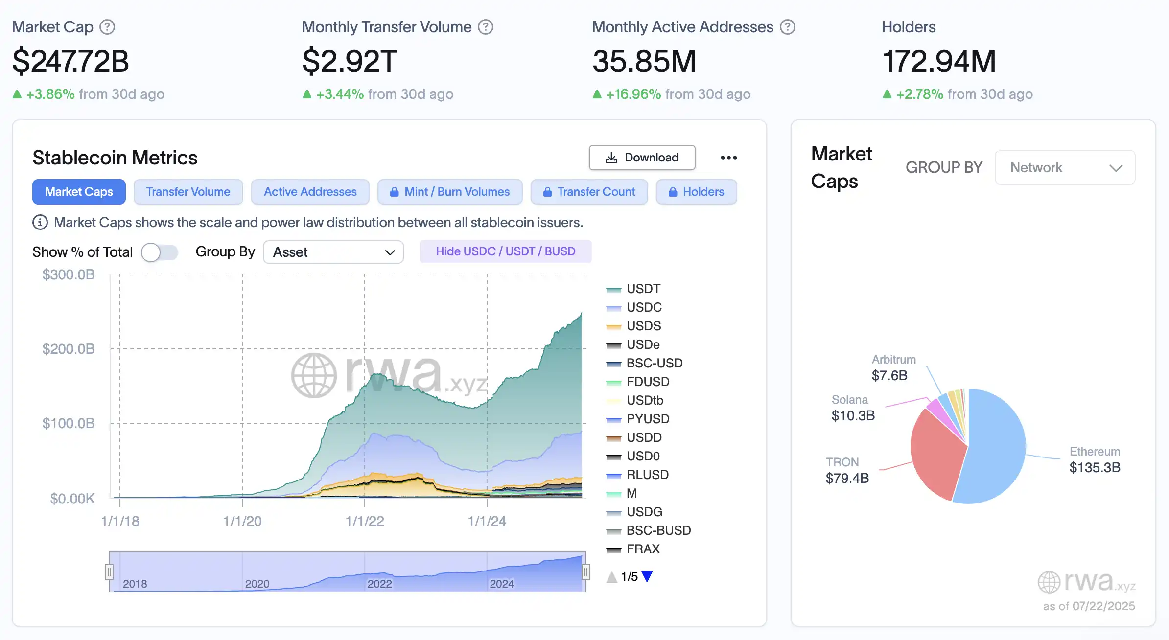 从 BitGo 的 IPO 动向来看,它所处的位置正好是当下「监管明朗+资本重估」两大叙事交汇的支点。今年 6 月,稳定币 USDC 发行方 Circle 成功在纽约证券交易所上市,成为全球首家登陆主板的稳定币平台。今年 7 月,美国通过的《GENIUS 法案》,确立稳定币的联邦监管框架,同时赋予持牌信托机构与银行法定托管地位,BitGo 作为最早持有纽约信托牌照的加密企业之一,具备监管优势。