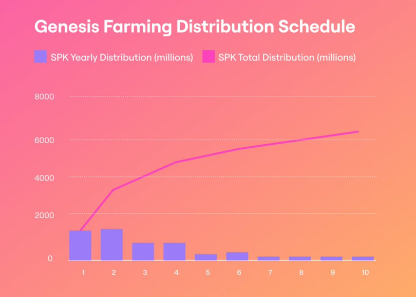 SPK 是 Spark 的原生代币,总共 100 亿枚,这 100 亿枚 SPK 代币将在最初的 10 年内进行分配。