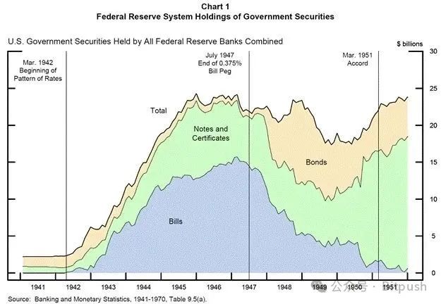 从历史背景来看,当美联储和财政部需要为美国的二战冒险提供资金时,他们也求助于发行远多于债券的国库券。