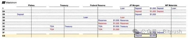MP Materials(MP)需要建造一个稀土加工厂,并从摩根大通(JPM)获得 1000 美元贷款。贷款行为创造了 1000 美元的新法币(wampum),这笔钱存入摩根大通。