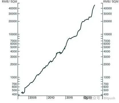 19 年间,土地价格上涨了 80 倍,复合年增长率(CAGR)达 26%。