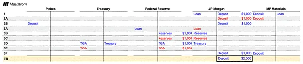 MP Materials(MP)需要建造一个稀土加工厂,并从摩根大通(JPM)获得 1000 美元贷款。贷款行为创造了 1000 美元的新法币(wampum),这笔钱存入摩根大通。