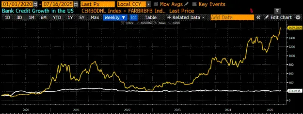 - 信贷成长引发的金融资产通胀冲动被导向加密货币,加密货币飙升,广大民眾因其惊人的收益而感到更富有。他们将在 2026 年和 2028 年投票给共和党……除非他们有一个十几岁的女儿……或者也许民眾总是跟著钱包投票。