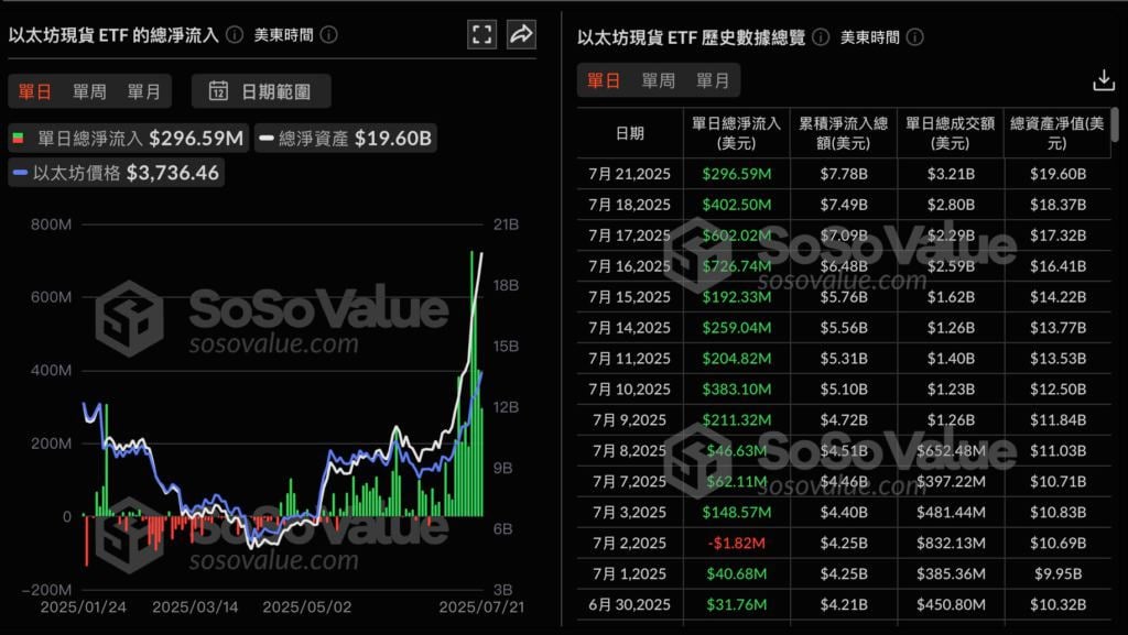 以太坊( ETH )价格近日虽然在 3,800 美元遇阻,但根据 Sosovalue 数据, 美国现货以太坊 ETF 仍 持续吸金(连续十二天维持正流入),过去两个月的净流入超过 50 亿美元。加上多家上市公司加仓 ETH 储备 ,形成强劲的购𧹒助力,侭管 ETH 近三个月已上涨超过 160%,但市场仍认为上行空间存在。