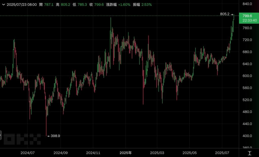 BNB 突破 800 美元创历史新高,睽违七个月进入新价格发现阶段