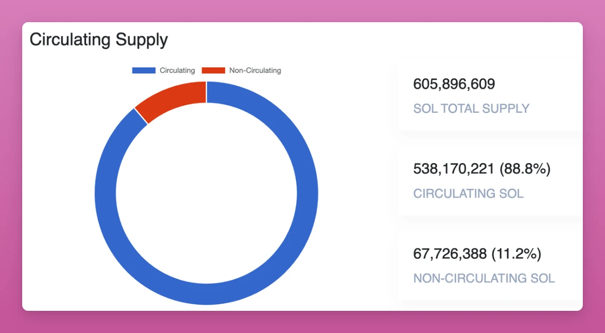 数据显示: 88% 的 SOL 供应量正在流通,约为 5.3817 亿枚。