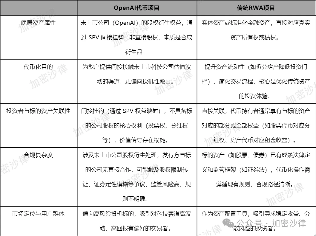 表 1 OpenAI 代币项目与传统 RWA 项目对比