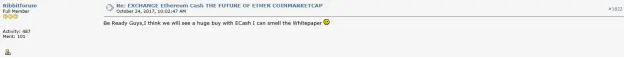 WIRED 获取的一份表格显示,仅在数天内,已有数百人注册参与 EthereumCash 的空投。与此同时,BitcoinTalk 论坛上讨论热烈。一位用户 写道 :「让我们传播消息,让更多人注意到这个出色的代币。」截至 10 月 19 日,EthereumCash 的 市值已上涨 至约 130 万美元。
