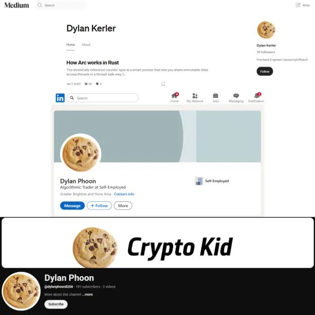直到最近,一个使用「outdoteth」昵称的 GitHub 账号 仍保留着一个旧代码库,其中包含一封以 Dylan Phoon 命名的 Gmail 邮箱;该邮箱所用头像,也同时出现在名为 DylanKerler1 的 Medium 账户 上,以及 Dylan Phoon 名义下的 LinkedIn 与 YouTube 账号中。