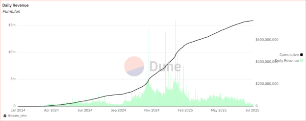 时至今日,Pump.Fun 的狂飙仍未停歇。 据第三方统计 ,其平台每日营收高达 100 万美元。创始人们的财富水涨船高,早已甩开当年的 eBitcoinCash 与 EthereumCash 数条街。而在这个「造富机器」持续运转的同时,违背初衷的 Rug Pull 也 仍在持续上演 ,几乎无人问津。