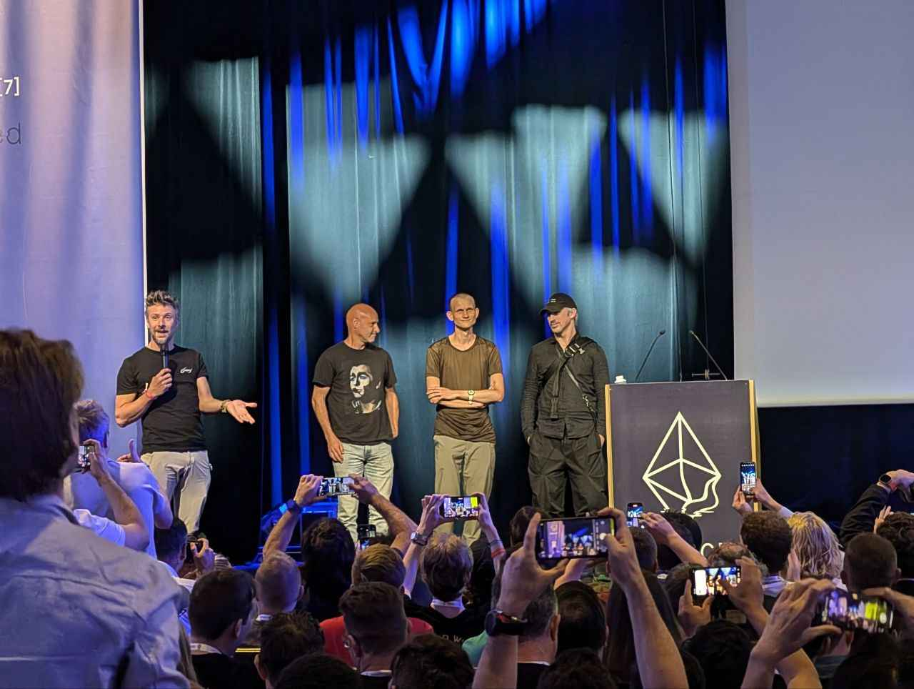 有意思的是,在 2024 年 7 月份布鲁塞尔的 EthCC7 会议上,Vitalik 演讲结束后,曾经的以太坊三位核心创始人 Vitalik Buterin、Joseph Lubin 和 Gavin Wood,完成了世纪大合影,算是给曾经这段的「决裂」闭环了一个体面的句号与和解。