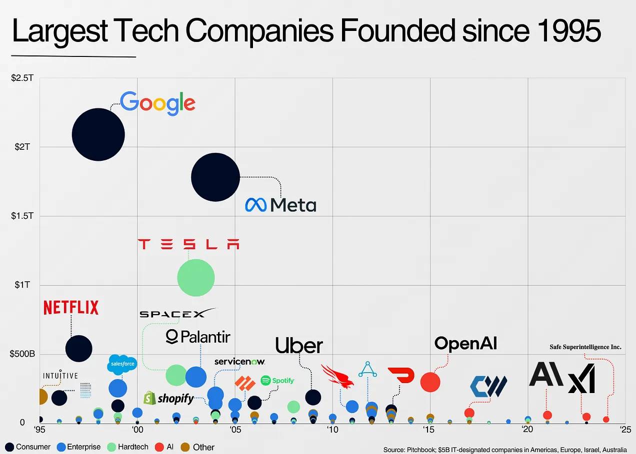 要开始了解一些数据,请查看自 1995 年以来成立的最大公司: