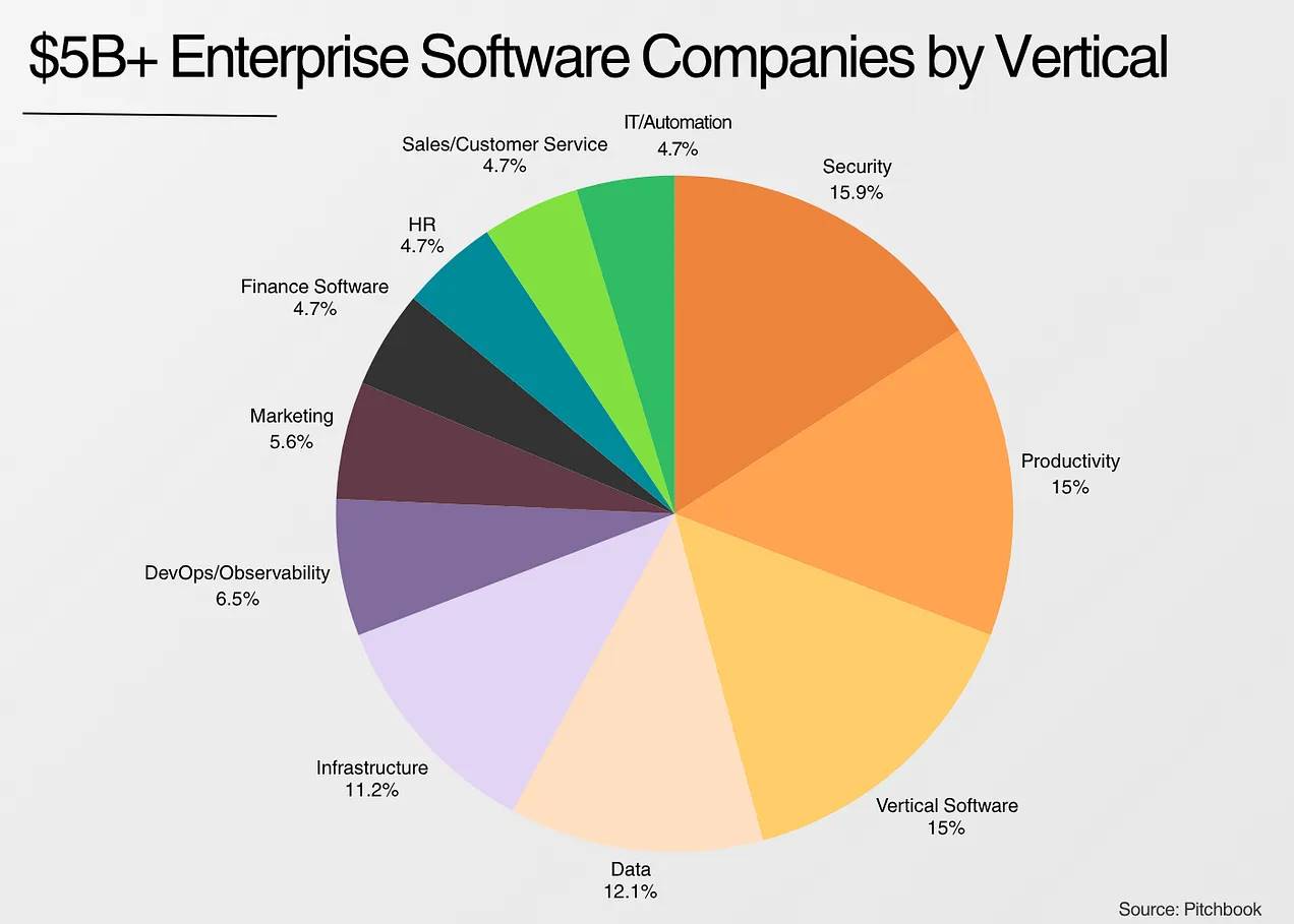 正如我之前提到的,企业软件比其他类别的风险更低,也更可预测。然而,除了横向企业软件之外,市场规模似乎并没有表面上那么重要。「这家公司能做多大?」和「这个市场有多大?」是两个截然不同的问题。