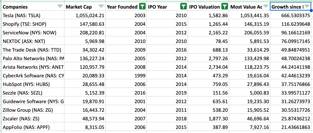 我研究了自 2010 年以来成立的公司,这些公司在公开市场上实现了最高倍数回报,可以说是一种低估指标。