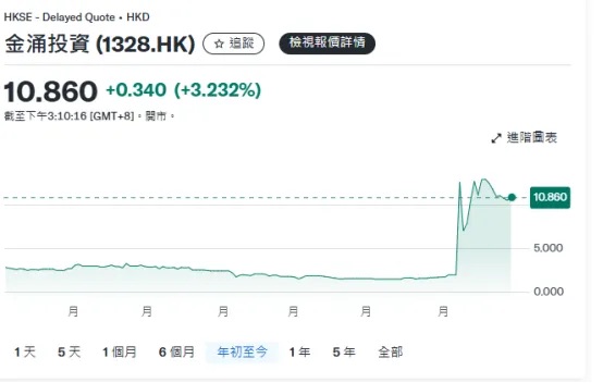 7 月 7 日,金涌投资发布公告称,公司已与 AnchorX 簽订𢧐略合作框架备忘录,将在跨境支付与贸易、稳定币应用场景拓展等四个领域探索潜在合作,第二日,金涌投资放量飙升 533.17%。