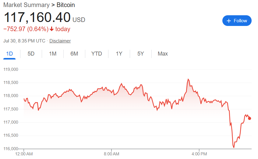 当日稍早,据华尔街见闻提及,美联储利率决议最终 7 月如预期未改变政策利率,同时鲍威尔未就 9 月降息给指引,强调关税和通胀的不确定性,称就业市场未走弱,比特币较日内高点一度下挫 2.5%。尽管报告发布后比特币价格出现反弹,但仍处跌势。