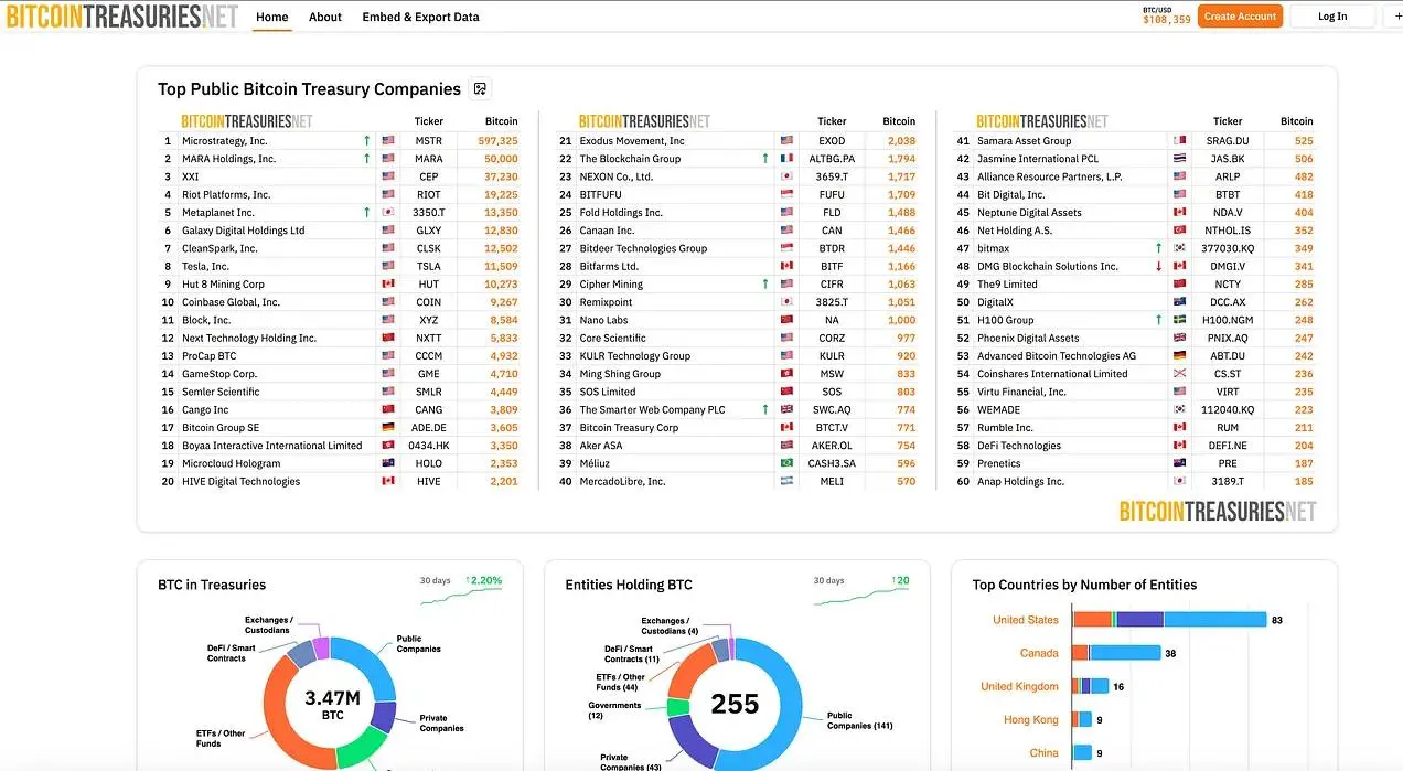 如今,比特币财库公司呈现出惊人的相似模式;随着全球各地的公司竞相复制 MicroStrategy 的成功,每周都有新的实体公司推出。比特币财库公司的“寒武纪大爆发”可以通过网页数据面板实时追踪:
